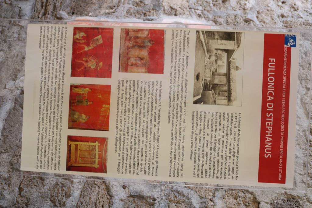 Questo edificio era un’antica lavanderia portata alla luce dagli archeologi nel 1911 e tuttora molto ben conservata; è l’unica delle quattro fulloniche di Pompei rimessa quasi completamente a nuovo. L’ingresso è molto ampio, molto simile a quello di una bottega, in modo tale da consentire il passaggio continuo dei clienti. Al momento dell’eruzione un solo uomo era presente all’interno con un mucchio di denaro, probabilmente l’ultimo incasso dell’attività (ma lo stesso scheletro potrebbe appartenere ad un viandante in cerca di riparo dalla lava).